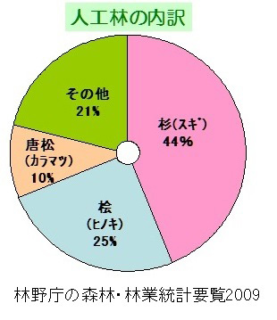 そして、その「山の畑」としての樹種の内訳は杉が5割近い数字になるのです。